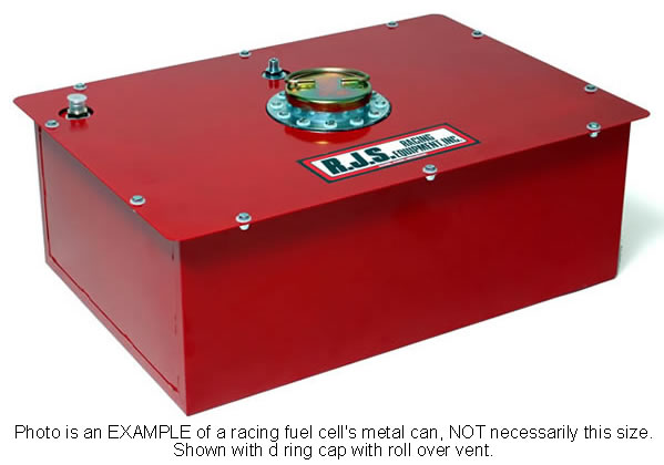 Photo is an EXAMPLE of a racing fuel cell's metal can, NOT necessarily this cell. Shown with d ring cap with roll over vent.