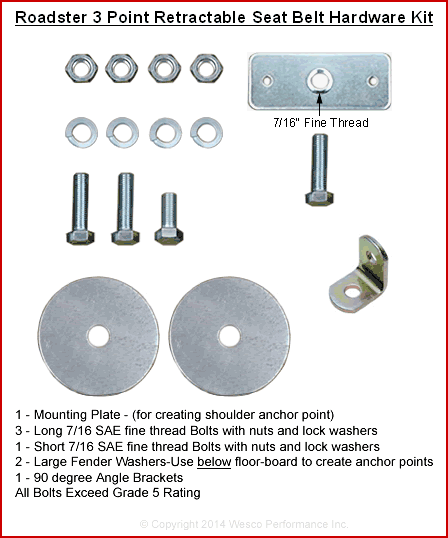 Note: To install a 3 point seat belt, your auto must have a manufacturer's shoulder bolt attachment point or you must create one (retrofit one).