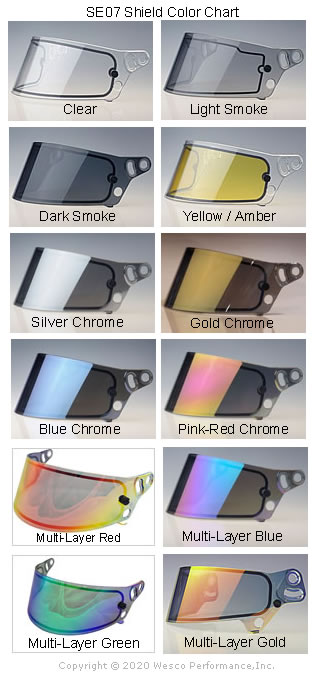 Optional Additional 3MM Shield Colors: Light Smoke, Dark Smoke, Yellow/Amber, Silver Mirror, Gold Mirror, Blue Mirror, Pink/Red Mirror, Irridium, Multilayer (ML) Red, ML Blue, ML Green, ML Gold
