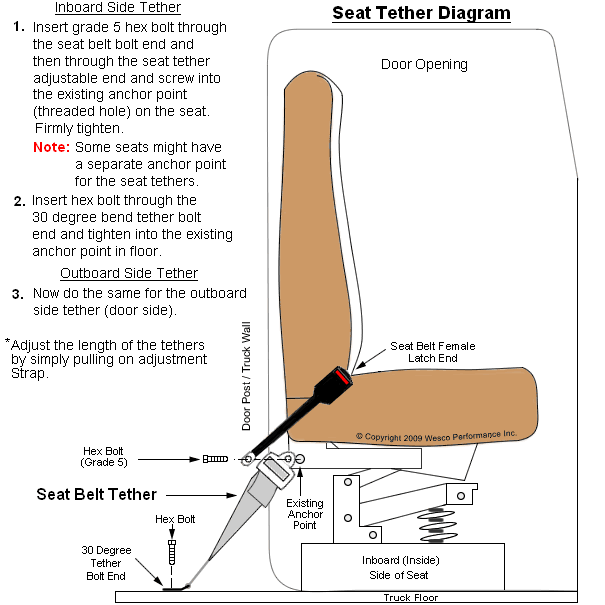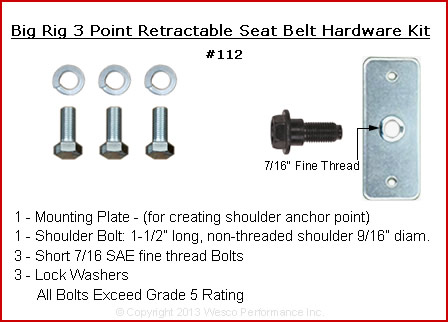 Includes 1 Truck Seatbelt Extender, 1 Grade 5 Bolt, 1 Lock Nut (or lock washer) and 2 Flat Washers
