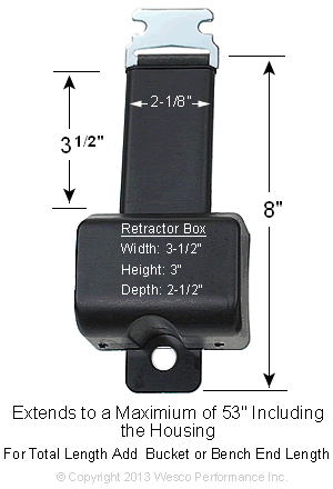 The retractor box is H: 2.5in x W: 3.5in x D: 3in and you want to make sure that you have sufficient space at the installation point area near or on the floor to accommodate the retractor.