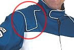 As shown circled in red on the photo above, epaulets are a strap of material located on the top of the shoulder area, common on military uniforms (jackets and shirts) and of course driving suits. These European style epaulets are "T" shaped with the bottom of the "T" ending near the collar and the top of the "T" running front to back out near the tip of the shoulder.