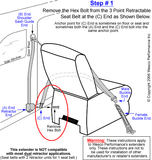 << Seat Belt << Industrial/Military Seat Belt << Seat Belt Extension << Seat Belt Extension Installation InstructionsBelow is our simple 3 step seat belt extender instructions for installation.