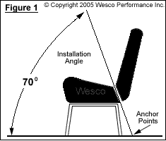2. Mark the floor to mount down and behind the seat to assure that the lap belt is pulling downward and rearward at approximately a 70 degree angle.