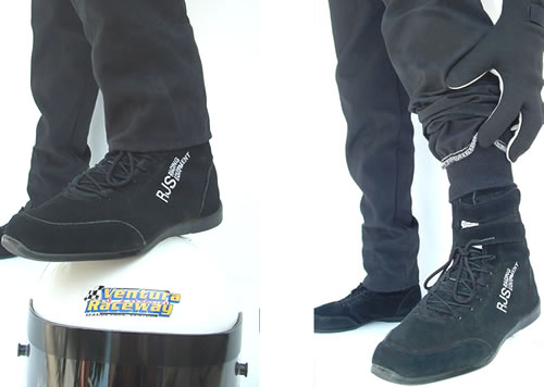 As you can see in the above left photo, Nascar cuffs give your driving suit the appearance of a normal lower pant leg (what is sometimes called a boot-cuff). It gives your suit leg cuff area that "Taylored Look," but underneath (as seen in photo on the right) is a snug fire resistant elastic material that keeps you protected!