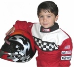 Our Quarter Midget Custom Race Suits SFI 3-2A/1 by RJS are constructed with 2 layers of fire retardant materials and sewn with high quality Nomex thread, Nomex cuffs and Nomex zippers. These suits are fire resistant rated SFI 3-2A/1.