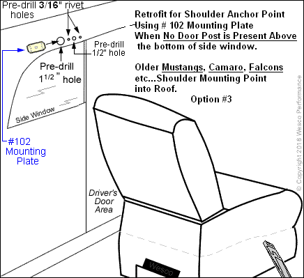 Step by step instructions, and diagrams to retrofit Wesco 3 point seat belts by creating a shoulder mounting point using our CA53 mounting plate (previously part #102) for your older vintage car, convertible, hardtop, classic car, hotrod etc.