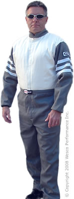 Style #3 Nomex® Child Race Suit - Racequip/Safequip 2-Layer SFI-5 (SFI 3-2A/5): Just Choose a 2 piece or 1 piece suit, your size, choose any colors that you would like and additional Extras. The price shown includes the additional "Custom" Race Suit Charge.
