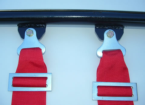 Bolt Ends are belts that come with metal tabs connected to the belt that are used to run a bolt through. The photo shows the bolt ends connected to metal tabs that are welded to a roll bar tube frame, but bolt ends are also used to connect seat belts to automobile manufacturer's threaded anchor points or retrofitted anchor points.